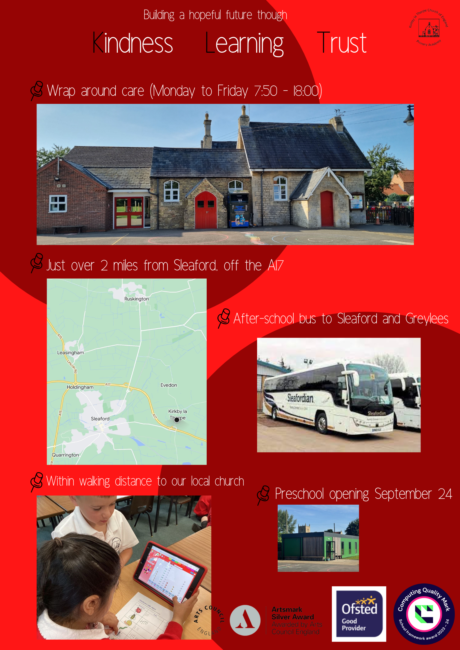 Only one application needs to be made which can also be completed online. The online application system opens on Friday 15th November 2024 and closes on Wednesday 15th January 2025. Details of the admissions’ process can be found on Lincolnshire’s website: www.lincolnshire.gov.uk/schools-and-education/school-admissions/. During the autumn term we host open evenings to provide prospective parents with the opportunity to visit our school and to see our school in action. In addition, the Head Teacher is happy to arrange individual visits.